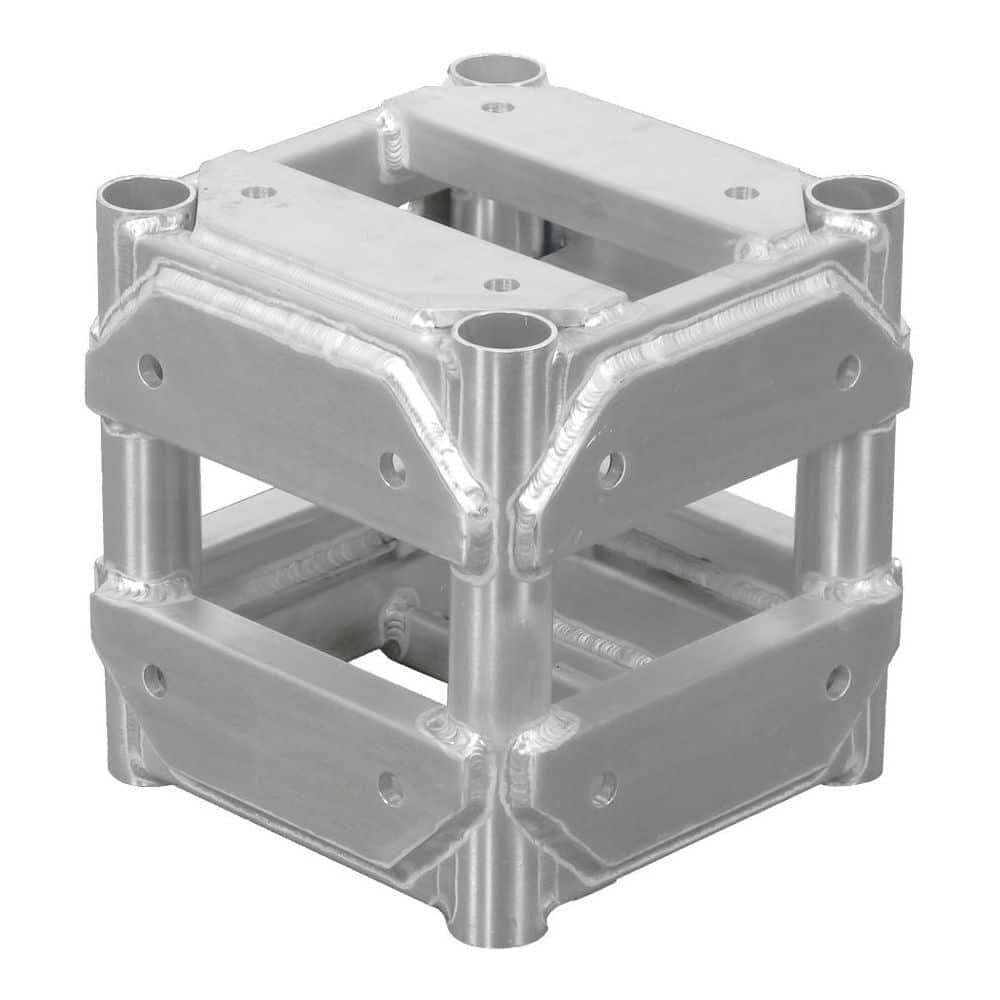 So, whether you’re setting up a stage, a lighting rig, or anything else that requires a solid framework, this 6 Way Corner Truss Block simplifies the process by providing a central point for all your truss connections, making your setup strong and secure without needing to be a truss expert.