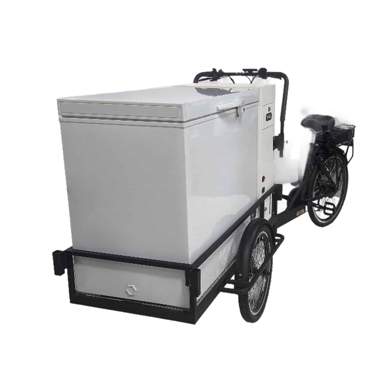 Modern Event Rental ATX offer Retro ice cream cart trike with freezer. Fun, mobile, and brandable dessert station for Austin events, from trade shows to weddings.